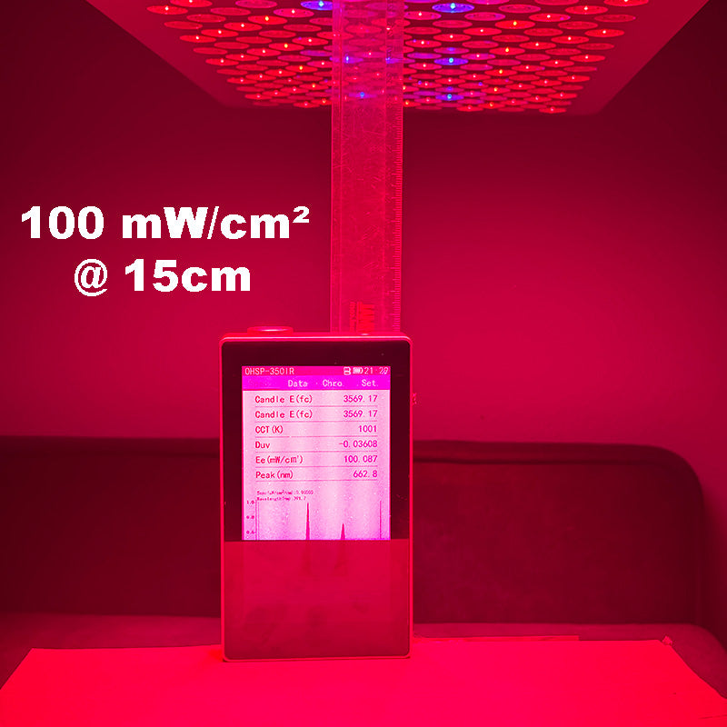 Tässä CE-sertifioidussa premium-mallissa yhdistyvät kliinisesti hyväksi todetut aallonpituudet ja innovatiiviset uudet ominaisuudet: Klassisista punaisesta ja lähi-infrapuna-alueista (630 nm, 660 nm, 810 nm, 830 nm, 850 nm) uusimpiin lisäyksiin - 480 nm:n siniseen lisäsovelluksiin ja 1060 nm:n NIR-alueeseen syvempiin vaikutuksiin. Jokainen aallonpituus voidaan säätää tarkasti 100 %:sta 0 %:iin. Lisäksi käytettävissä on yksilöllisiä pulssivaihtoehtoja 0-9999 Hz - juuri sinun tarpeisiisi räätälöityä hoitoa varten.
